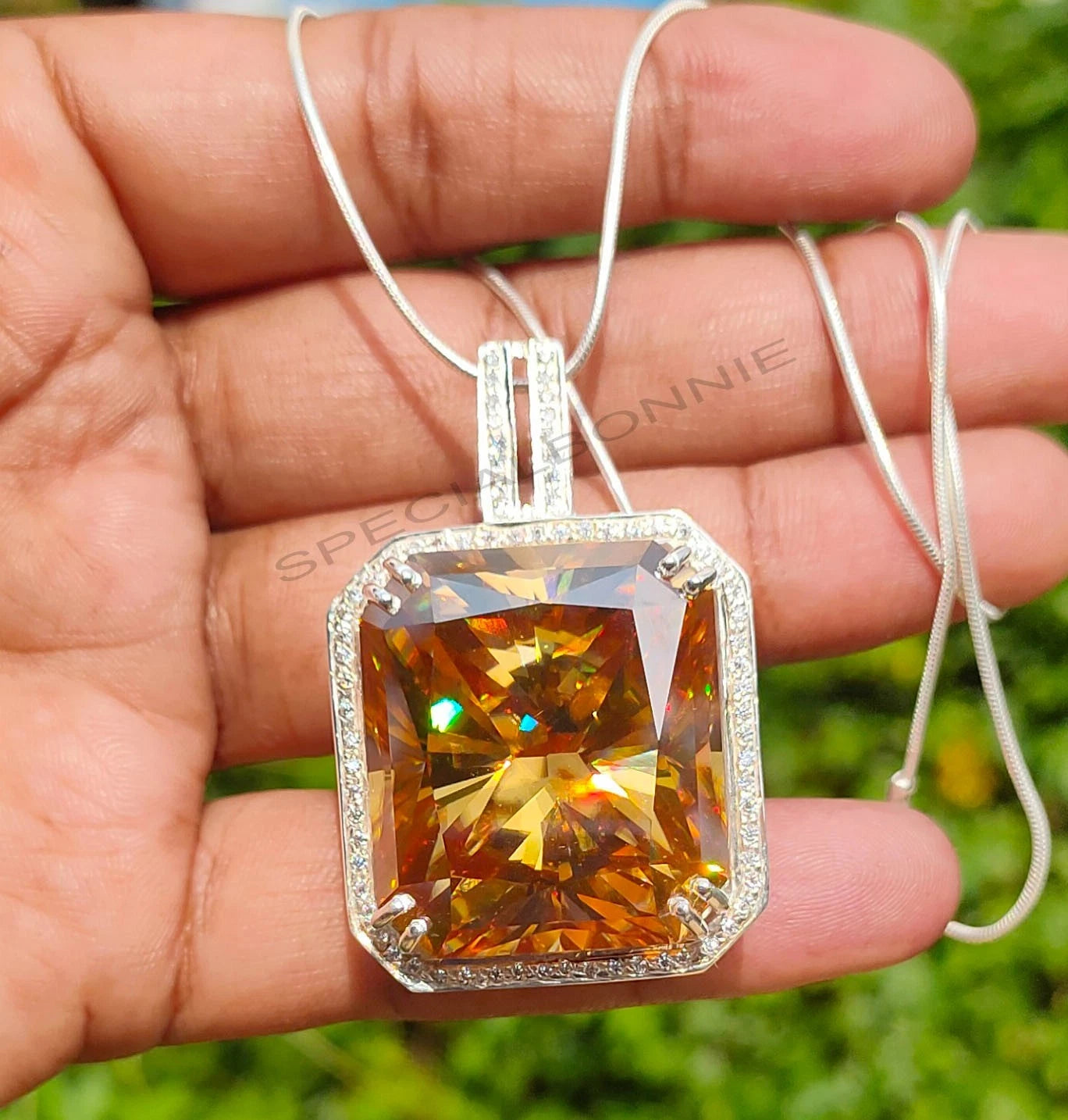 HUGE 82.50 Ct Champagne Moissanite Pendant – Amazing Shine & Luster !