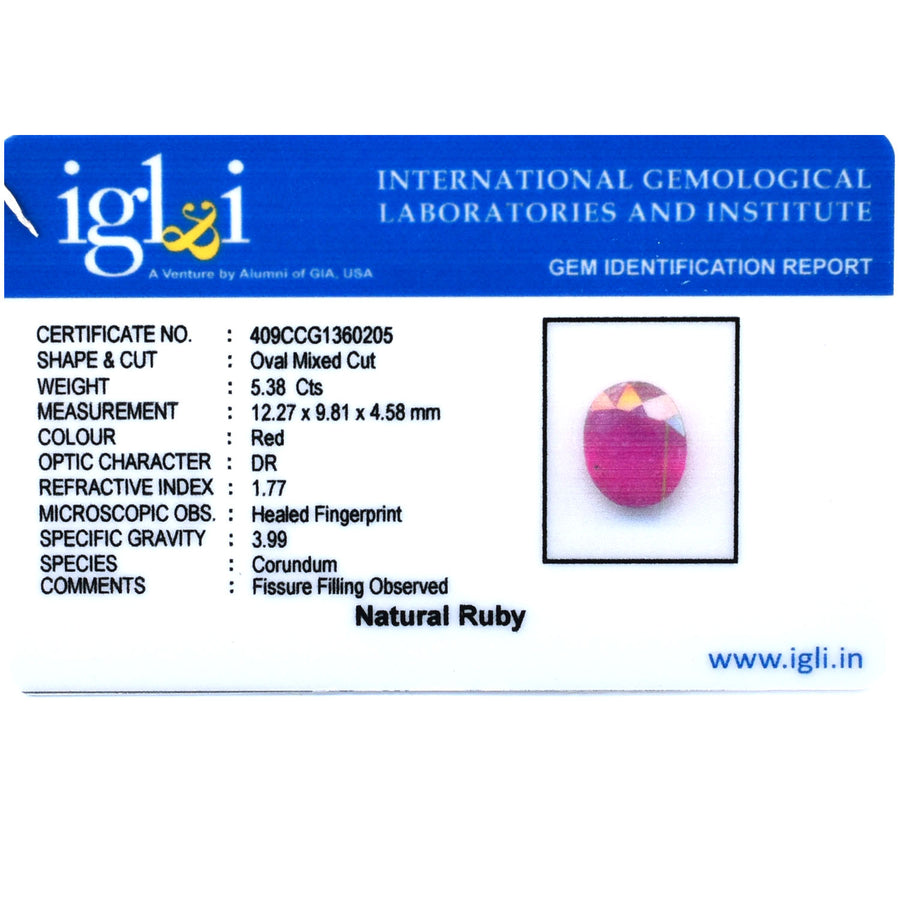 Natural Ruby Gemstone – 5.75 Cts of Pure Elegance, Certified Oval Ruby Gemstone for Jewelry !