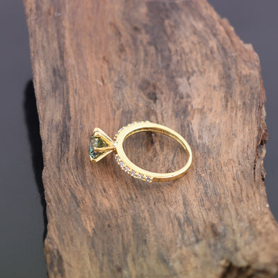 Blue Moissanite Ring with Accents Moissanite Color - BlueShape of Moissanite - Round Brilliant CutApprox. Weight of Moissanite - 1.35 CaratApprox. Size of Moissanite - 7 mmCut - ExcellentAccents -...